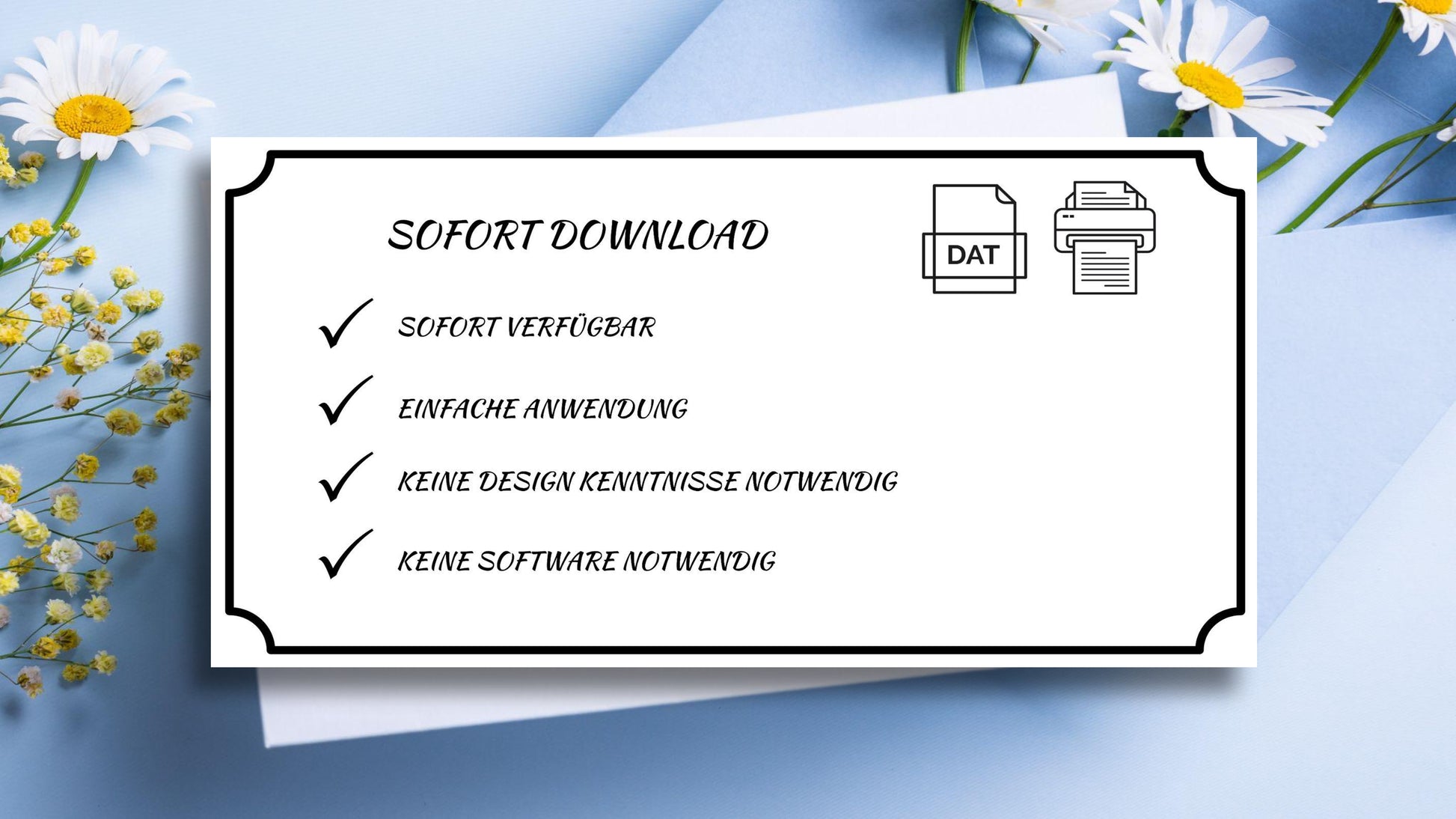 1. Selbst bearbeiten: nach dem Kauf erhältst Du ein PDF Dokument zum Herunterladen sowie einen Link, der beim Anklicken automatisch eine bearbeitbare Kopie in Canva öffnet. Bitte melde Dich kostenlos bei Canva an, um die Vorlage ganz nach Deinen Wünschen an – egal ob Texte, Daten, Überschriften oder sogar Schriftarten und Farben zu passen. Du kannst alle Elemente flexibel verändern – ganz ohne Software oder Designkenntnisse. Sobald Du mit dem Ergebnis zufrieden bist, lade Deinen Gutschein als PDF Datei herunter und anschließend kannst Du ihn ausdrucken.