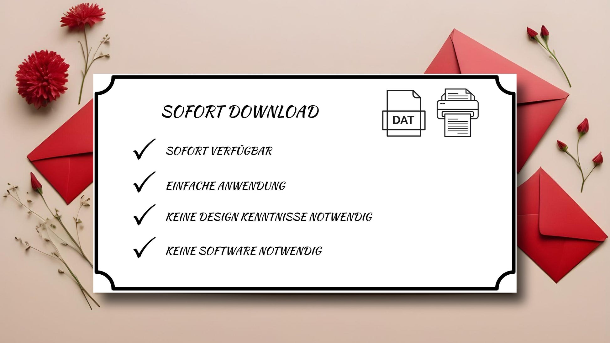 1. Selbst bearbeiten: nach dem Kauf erhältst Du ein PDF Dokument zum Herunterladen sowie einen Link, der beim Anklicken automatisch eine bearbeitbare Kopie in Canva öffnet. Bitte melde Dich kostenlos bei Canva an, um die Vorlage ganz nach Deinen Wünschen an – egal ob Texte, Daten, Überschriften oder sogar Schriftarten und Farben zu passen. Du kannst alle Elemente flexibel verändern – ganz ohne Software oder Designkenntnisse. Sobald Du mit dem Ergebnis zufrieden bist, lade Deinen Gutschein als PDF Datei herunter und anschließend kannst Du ihn ausdrucken.