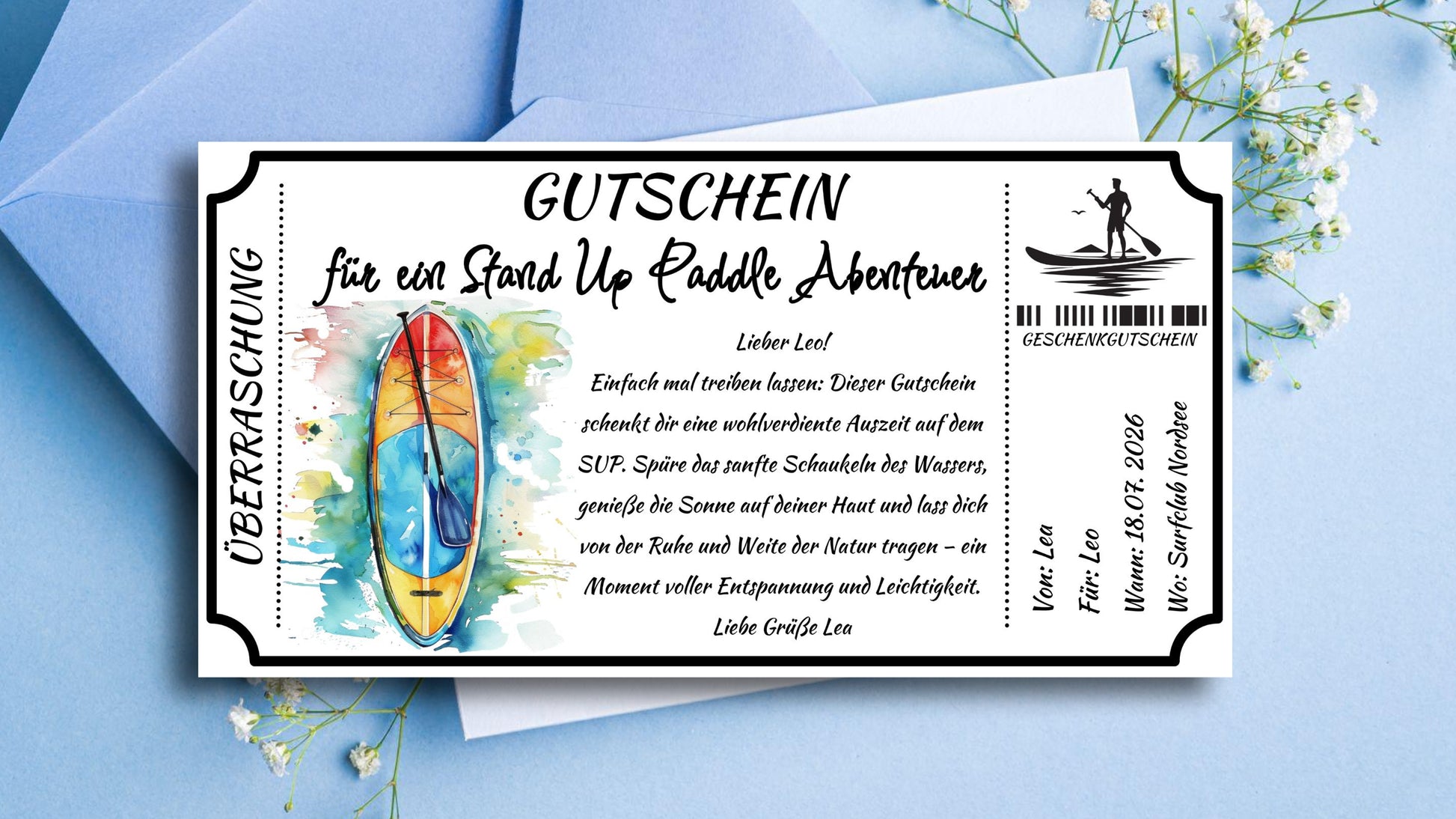 Mit unseren Gutscheinen lassen sich auch kurzfristige Geschenkideen mühelos realisieren. Und das Praktische: Die Vorlage steht Dir dauerhaft zur Verfügung. Elegantes Querformat – ideal zum Einlegen in Umschläge oder als besonderer Hingucker beim Verschenken.