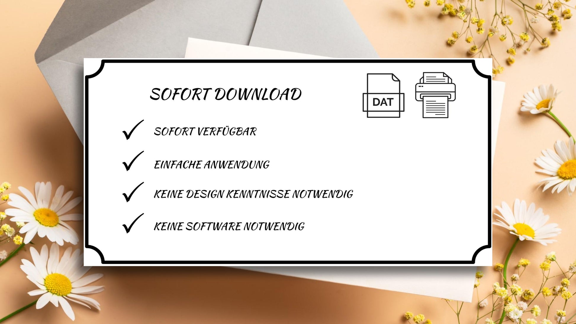1. Selbst bearbeiten: nach dem Kauf erhältst Du ein PDF Dokument zum Herunterladen sowie einen Link, der beim Anklicken automatisch eine bearbeitbare Kopie in Canva öffnet. Bitte melde Dich kostenlos bei Canva an, um die Vorlage ganz nach Deinen Wünschen an – egal ob Texte, Daten, Überschriften oder sogar Schriftarten und Farben zu passen. Du kannst alle Elemente flexibel verändern – ganz ohne Software oder Designkenntnisse. Sobald Du mit dem Ergebnis zufrieden bist, lade Deinen Gutschein als PDF Datei herunter und anschließend kannst Du ihn ausdrucken.