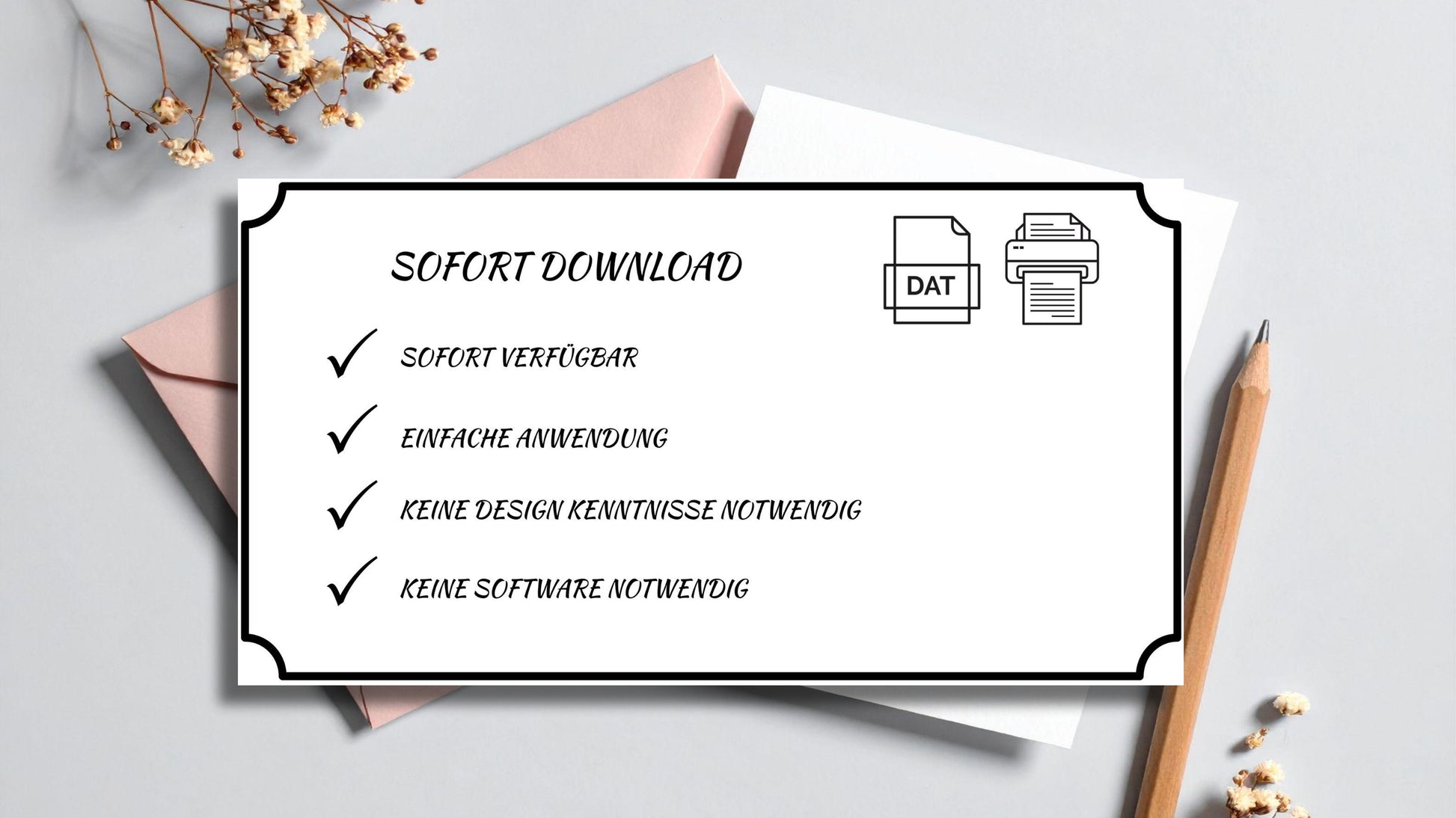 1. Selbst bearbeiten: nach dem Kauf erhältst Du ein PDF Dokument zum Herunterladen sowie einen Link, der beim Anklicken automatisch eine bearbeitbare Kopie in Canva öffnet. Bitte melde Dich kostenlos bei Canva an, um die Vorlage ganz nach Deinen Wünschen an – egal ob Texte, Daten, Überschriften oder sogar Schriftarten und Farben zu passen. Du kannst alle Elemente flexibel verändern – ganz ohne Software oder Designkenntnisse. Sobald Du mit dem Ergebnis zufrieden bist, lade Deinen Gutschein als PDF Datei herunter und anschließend kannst Du ihn ausdrucken.