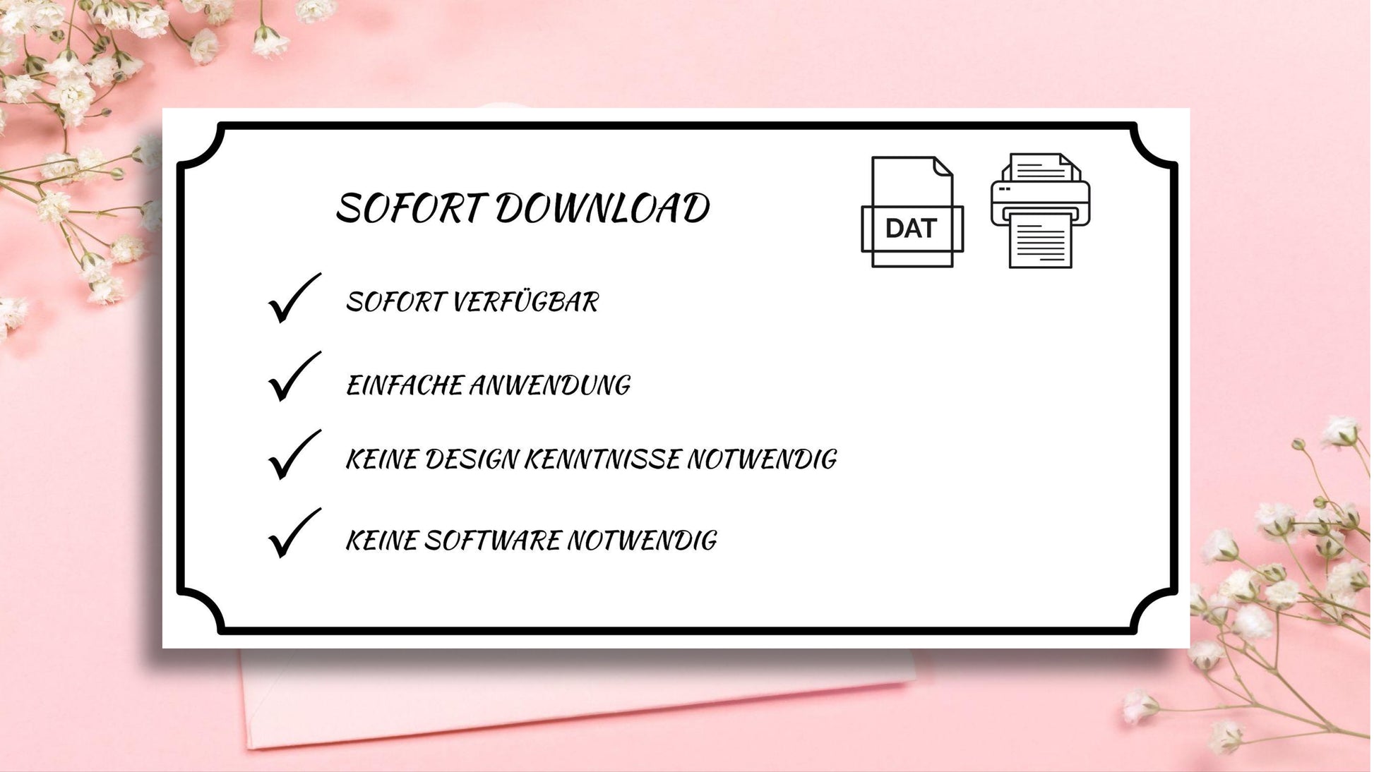 1. Selbst bearbeiten: nach dem Kauf erhältst Du ein PDF Dokument zum Herunterladen sowie einen Link, der beim Anklicken automatisch eine bearbeitbare Kopie in Canva öffnet. Bitte melde Dich kostenlos bei Canva an, um die Vorlage ganz nach Deinen Wünschen an – egal ob Texte, Daten, Überschriften oder sogar Schriftarten und Farben zu passen. Du kannst alle Elemente flexibel verändern – ganz ohne Software oder Designkenntnisse. Sobald Du mit dem Ergebnis zufrieden bist, lade Deinen Gutschein als PDF Datei herunter und anschließend kannst Du ihn ausdrucken.