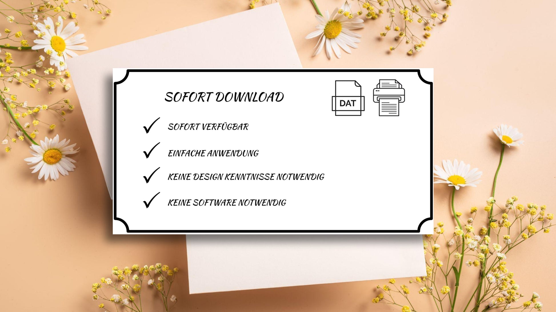 1. Selbst bearbeiten: nach dem Kauf erhältst Du ein PDF Dokument zum Herunterladen sowie einen Link, der beim Anklicken automatisch eine bearbeitbare Kopie in Canva öffnet. Bitte melde Dich kostenlos bei Canva an, um die Vorlage ganz nach Deinen Wünschen an – egal ob Texte, Daten, Überschriften oder sogar Schriftarten und Farben zu passen. Du kannst alle Elemente flexibel verändern – ganz ohne Software oder Designkenntnisse. Sobald Du mit dem Ergebnis zufrieden bist, lade Deinen Gutschein als PDF Datei herunter und anschließend kannst Du ihn ausdrucken.