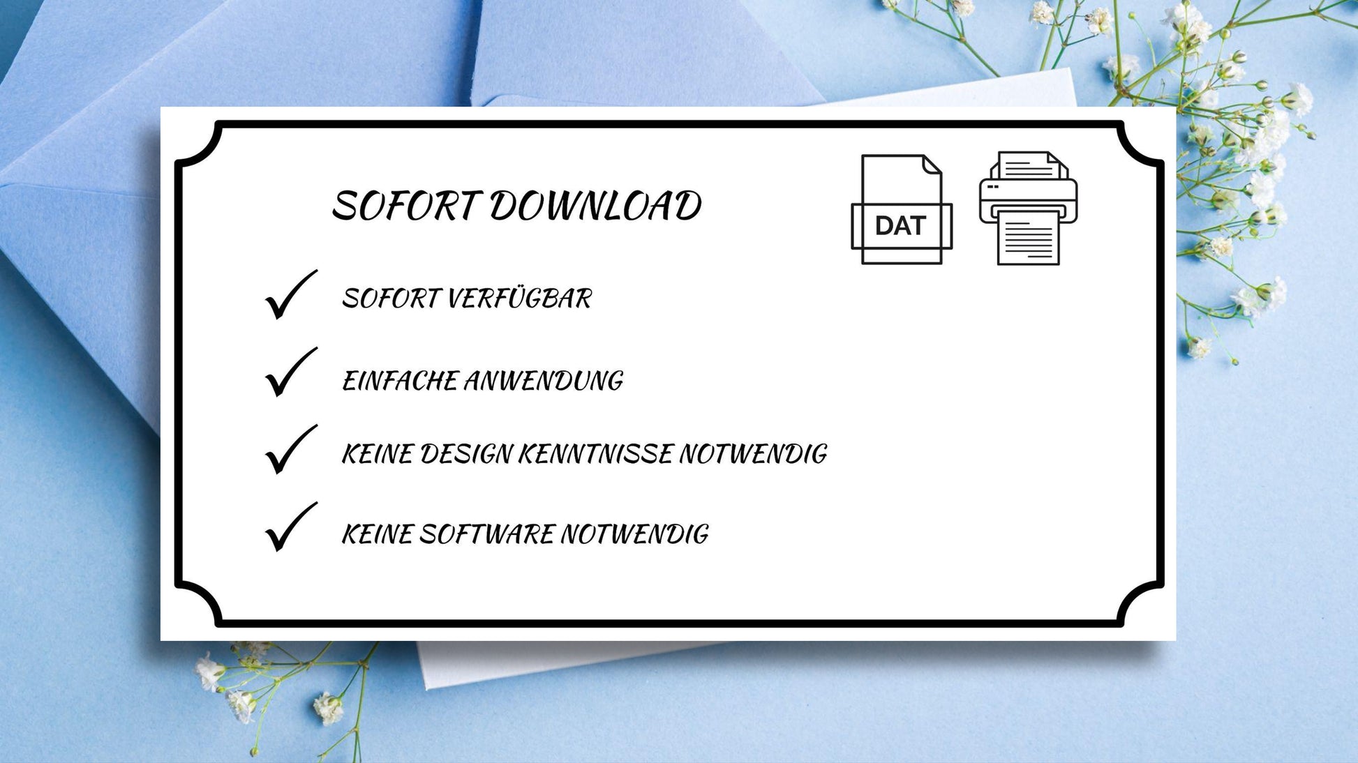 1. Selbst bearbeiten: nach dem Kauf erhältst Du ein PDF Dokument zum Herunterladen sowie einen Link, der beim Anklicken automatisch eine bearbeitbare Kopie in Canva öffnet. Bitte melde Dich kostenlos bei Canva an, um die Vorlage ganz nach Deinen Wünschen an – egal ob Texte, Daten, Überschriften oder sogar Schriftarten und Farben zu passen. Du kannst alle Elemente flexibel verändern – ganz ohne Software oder Designkenntnisse. Sobald Du mit dem Ergebnis zufrieden bist, lade Deinen Gutschein als PDF Datei herunter und anschließend kannst Du ihn ausdrucken.